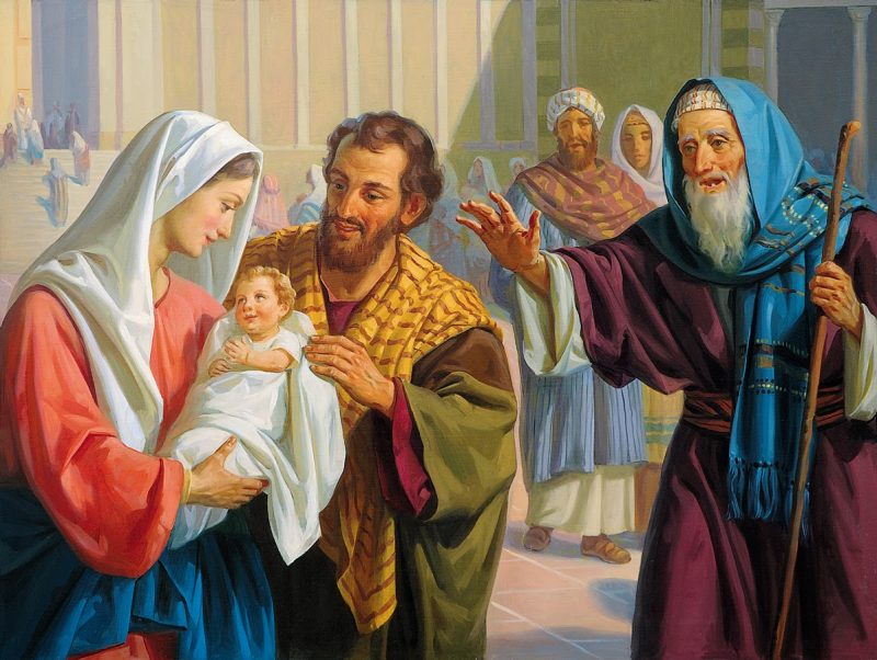 “Mosso dallo Spirito, si recò al tempio e, mentre i genitori vi portavano il bambino Gesù per fare ciò che la Legge prescriveva a suo riguardo, anch’egli lo accolse tra le braccia e benedisse Dio” (Lc 2,22-35)