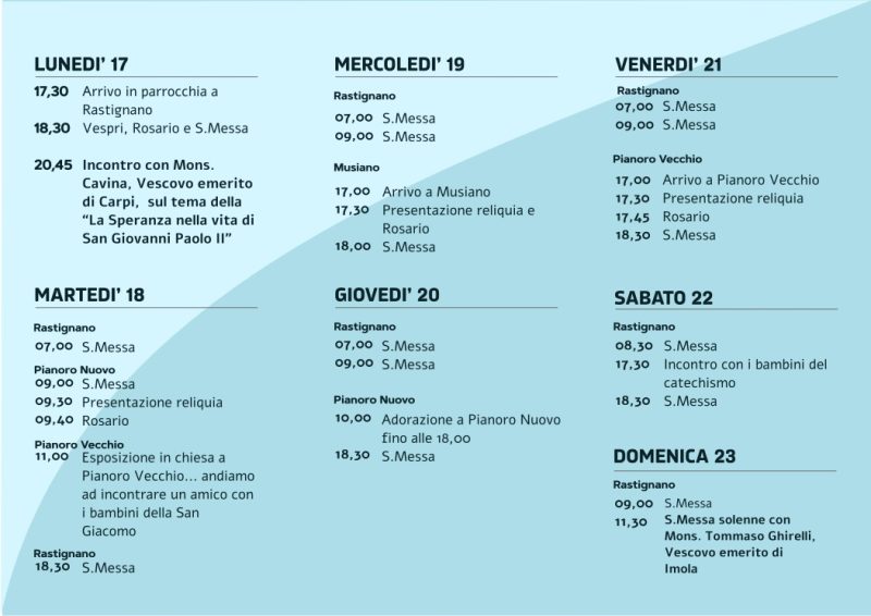 Programma dettagliato Visita Reliquia di S. Giovanni Paolo II
